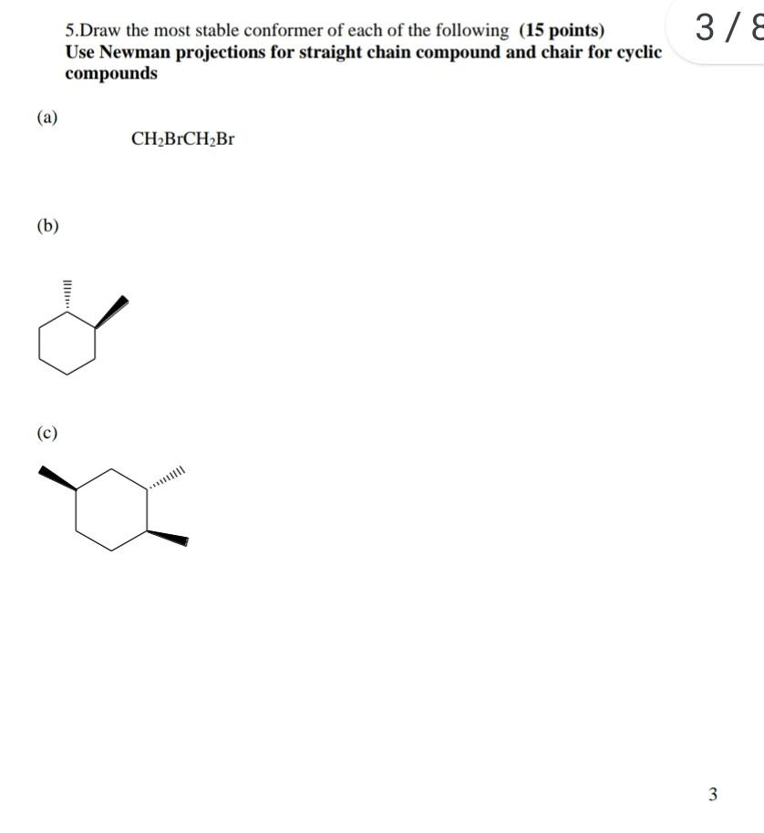 Solved 3 5 Draw The Most Stable Conformer Of Each Of The Chegg Com