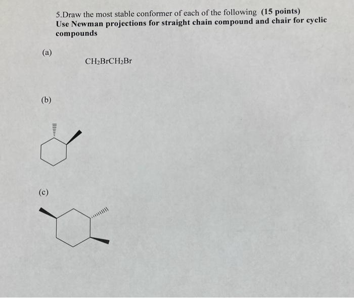 Solved 5 Draw The Most Stable Conformer Of Each Of The Chegg Com